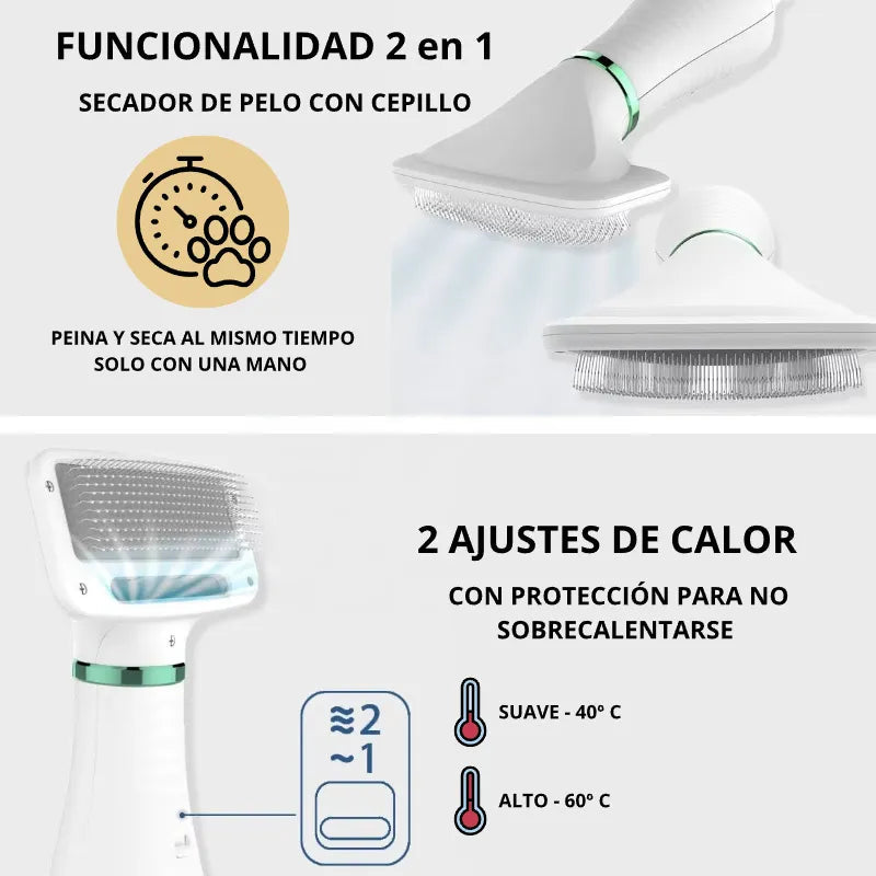 ✔️ Secado y cepillado en un solo paso – Ahorra tiempo y esfuerzo en cada sesión de aseo.